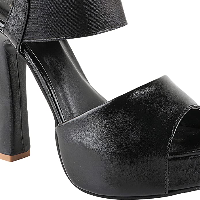 About this Item PRODUCT DETAILS : A pair of black peep toe | has regular styling | ankle loop detail | Synthetic upper | Cushioned footbed | Textured and patterned outsole | has a platform heel. Size & Fit : Heel height: 13 cm (4.5 inches) Material & Care : Synthetic patent Wipe with a clean, dry cloth to remove dust Type : Peep Toes | Heel Type : Platform | Sole Material : Resin | Fastening and Back Detail : Ankle Loop | Toe Shape : Peep Toe | Ankle Height : Regular | Pattern : Solid These stunning stilettos from SHOETOPIA will help you take your personal style from good to great. When youre going clubbing with the girls, style this pair with a fitted dress and your favourite handbag. Additional Information ManufacturerJAI MAA ENTERPRISES DSIIDC Narela Industerial Area North West Delhi-110040 PackerAbc Item Weight250 g Item Dimensions LxWxH24 x 9 x 5 Centimeters Net Quantity1.00 Set Generic NameHeeled Sandal